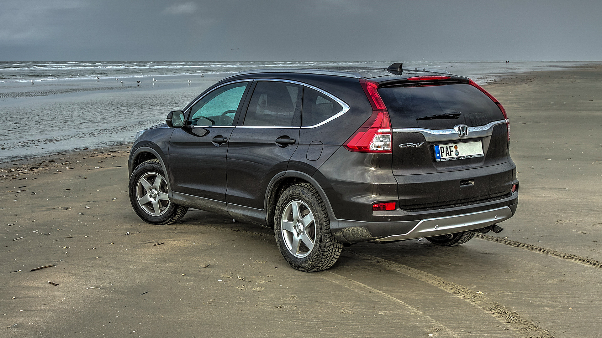 Im letzten Herbst auf der dänischen Insel Rømø. Einige Strandabschnitte sind mit dem Auto befahrbar - bis hin zur Wasserlinie. Dem Pitti und mir hat es sehr viel Spaß gemacht, durch Sand und seichtes Wasser zu cruisen.